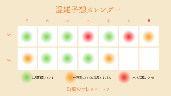 緑色の曜日は基本的にお待たせせずにご案内できるのでおすすめです。